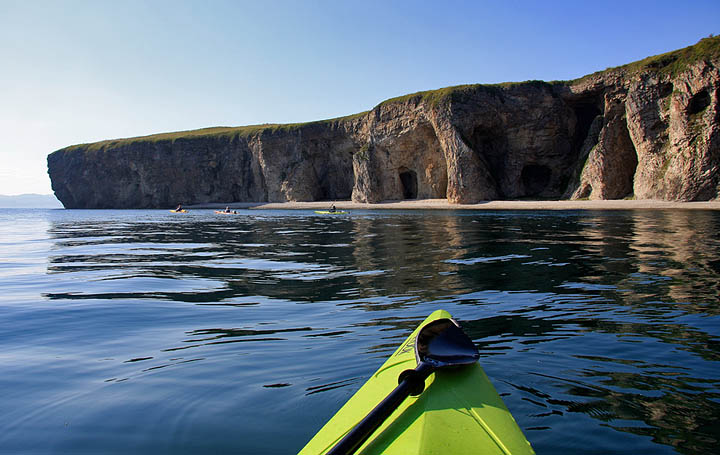 Стройной каякерской колонной идем вдоль своеобразного мыса Клерка.