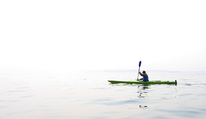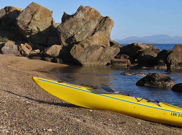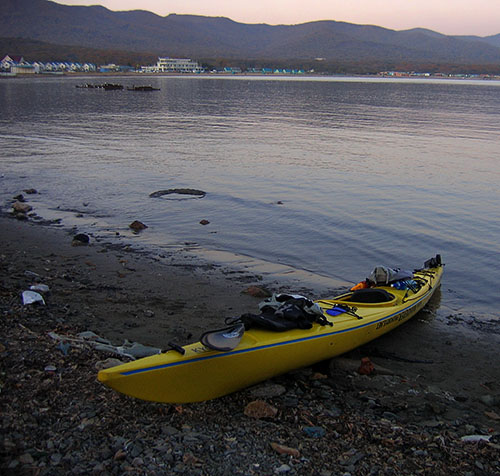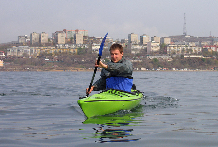 Виляя рулем и сверкая электрическими разрядами на лоснящихся боках, проносится мимо морской болид с ошалелым от солнца, воздуха, воды и гребли Серегой... Ну а перед этим в составе двух человек, двух лодок и одной машины забросились мы в бухту Новый Джигит (о.Русский) и уже с этого плацдарма ринулись накручивать морские узлы. В итоге получилась трехдневная одиссея среди наших островных владений, с ночевками на о.Рикорда.