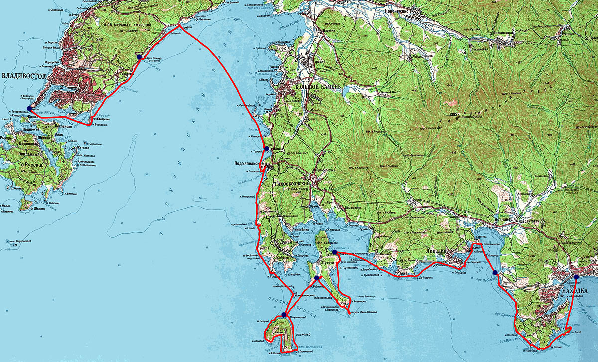 Автобус. Вечерний рейс Владивосток - Находка. Сижу у окна, откинувшись в кресле, в ушах наушники – слушаю Пелевинское «Generation П»... По завершении морского перехода на каяках из Находки во Владивосток, я возвращаюсь в отправную точку нашего путешествия за оставленной там на стоянке машиной, на которой мы и забрасывались с лодками и снарягой. Всего 4 часа, и я уже в Находке. Этот же путь, но только морем на каяках, у нас занял целую неделю. Летайте самолетами! ;).