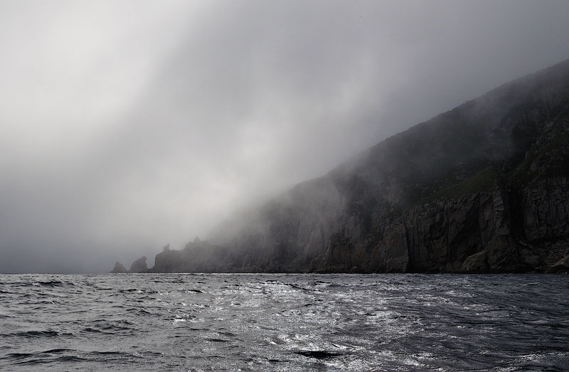 Хмарь эта преследовала меня в течение дня постоянно, то пыталась поглотить все вокруг, то застревала где-то за пройденными мысами, и, затаившись, накапливала силы. |