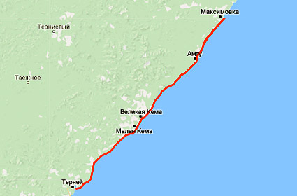 Терней – Малая Кема – Амгу – Максимовка и обратно.